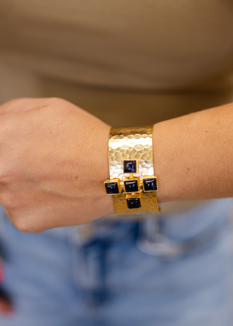 Weisinger Design - adjustable double sided rhinestone cross gold beaded bracelet