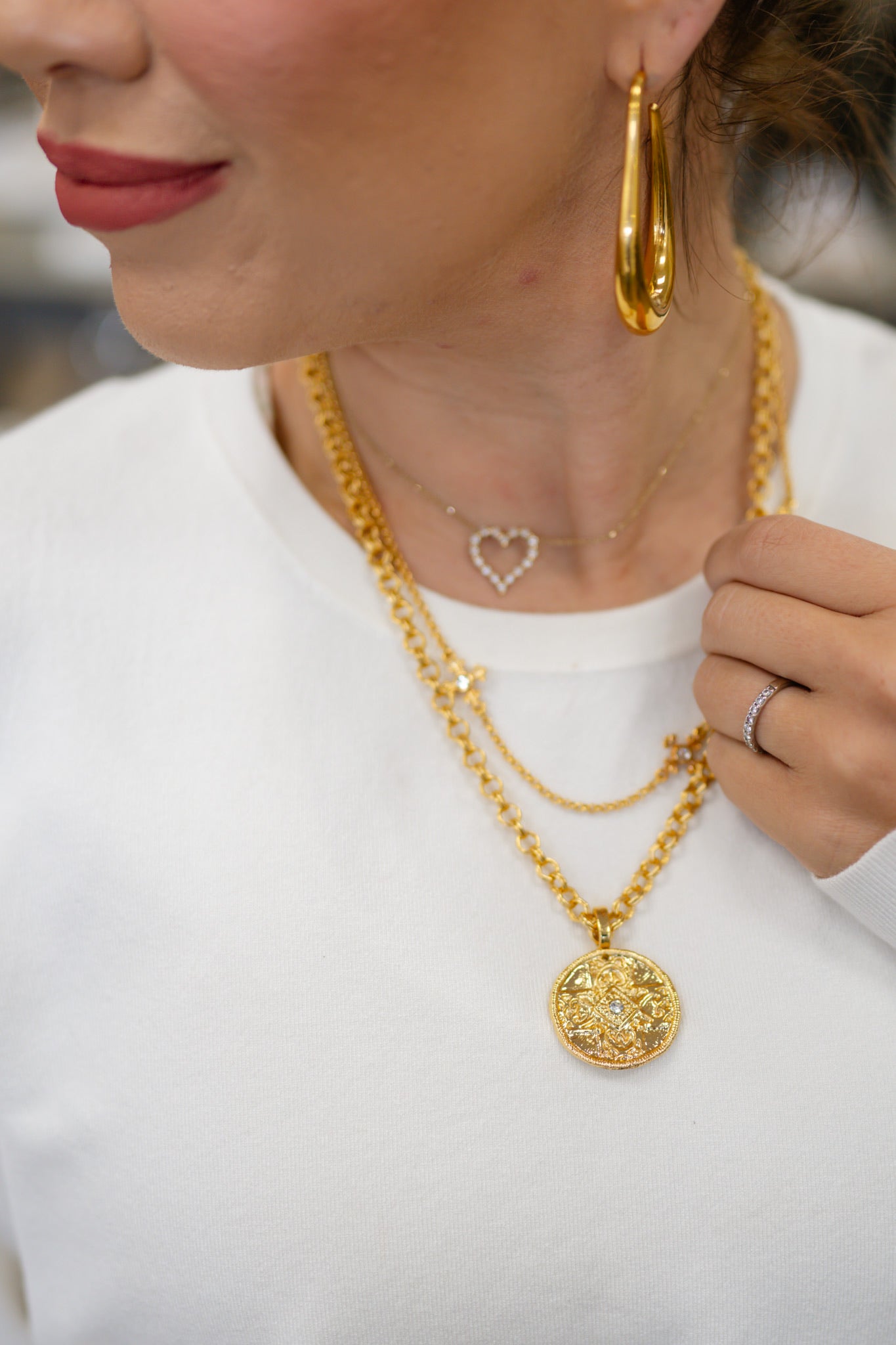 Adorn yourself with our Weisinger Design 21” length chain, featuring a unique cross coin pendant. Created by the Weisinger brand, this piece is sure to add a touch of quirk and playfulness to any outfit. Embrace your fun-loving side with this fun and trendy accessory!