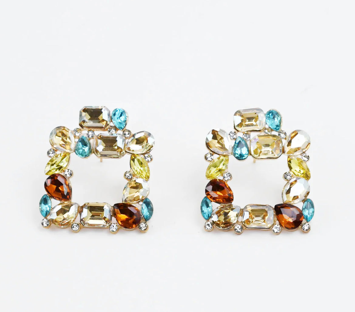 - This collection features three stunning pairs of statement earrings with sparkling crystals in radiant hues.