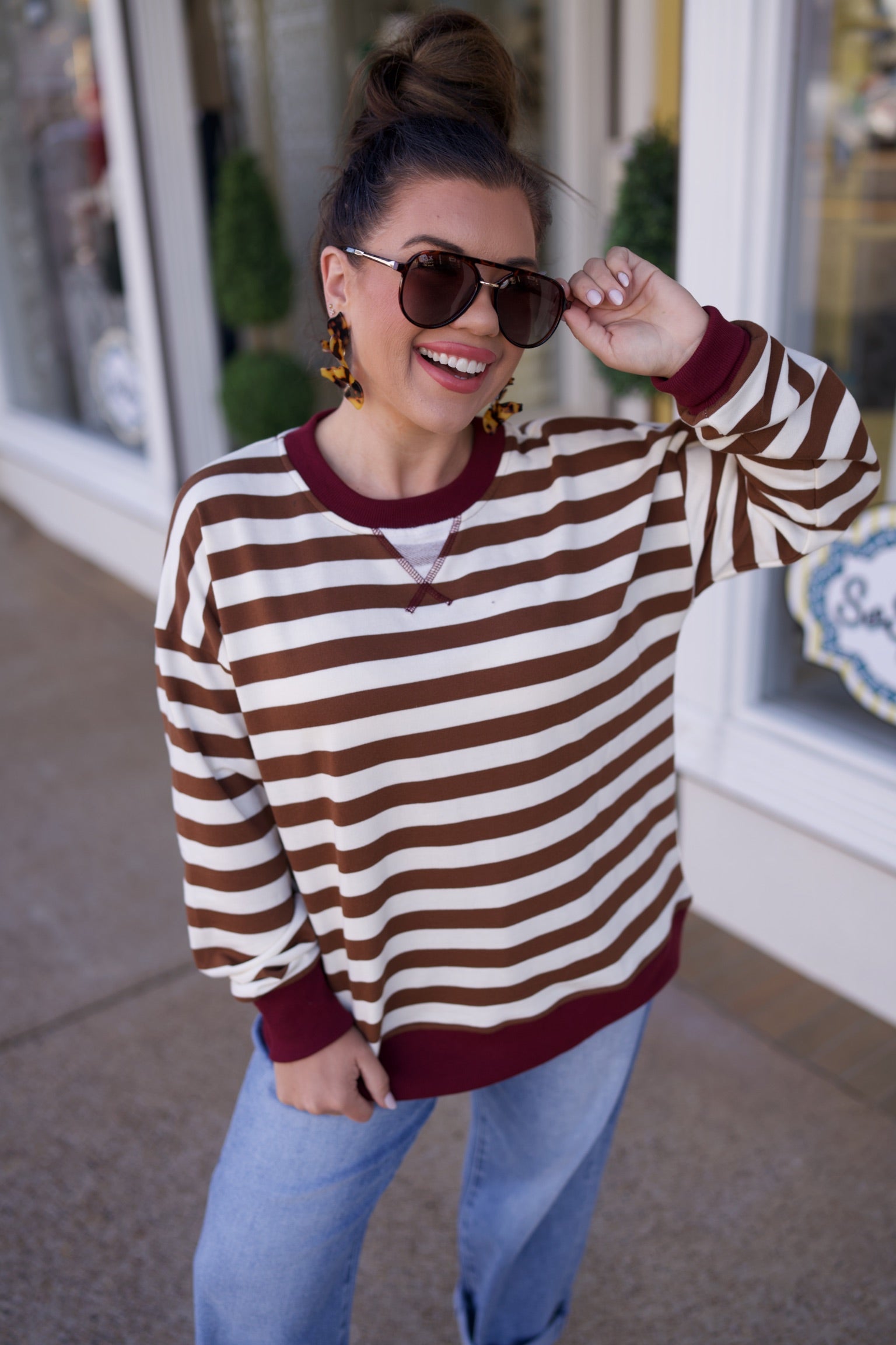 Introducing the Rebecca Sweatshirt – the perfect combination of comfort, style. This oversized sweater features trendy stripes and a fun color contrast. Made from soft material, it's the ultimate cozy piece for any wardrobe.