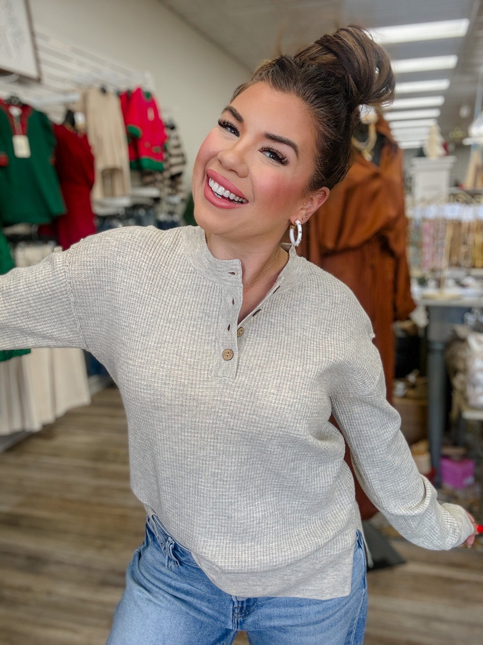 Add a little spice to your sweater game with The Kim sweater in oatmeal. This button up v neck sweater is sure to keep you cozy and stylish all season long. (Caution: wearing may result in excessive compliments and envious stares!)